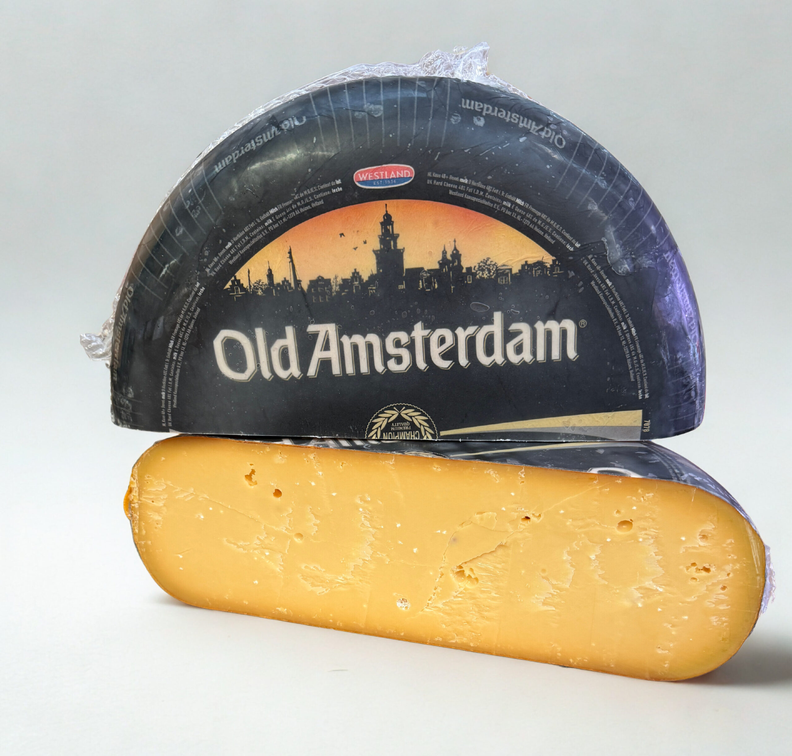 Old Amsterdam – holenderska klasyka z charakterem- to wykwintny, długo dojrzewający ser typu Gouda, który zachwyca intensywnym, głębokim smakiem i delikatnie kruchą strukturą. Produkowany według tradycyjnej receptury, dojrzewa przez wiele miesięcy, by osiągnąć swój charakterystyczny, lekko pikantny aromat i wyczuwalne kryształki białka, które są znakiem dojrzałości i jakości.
