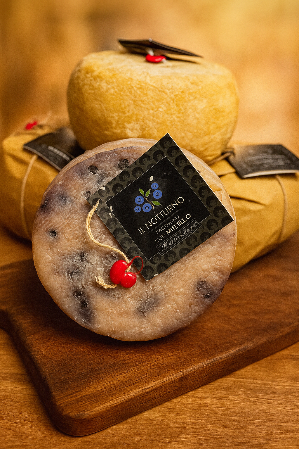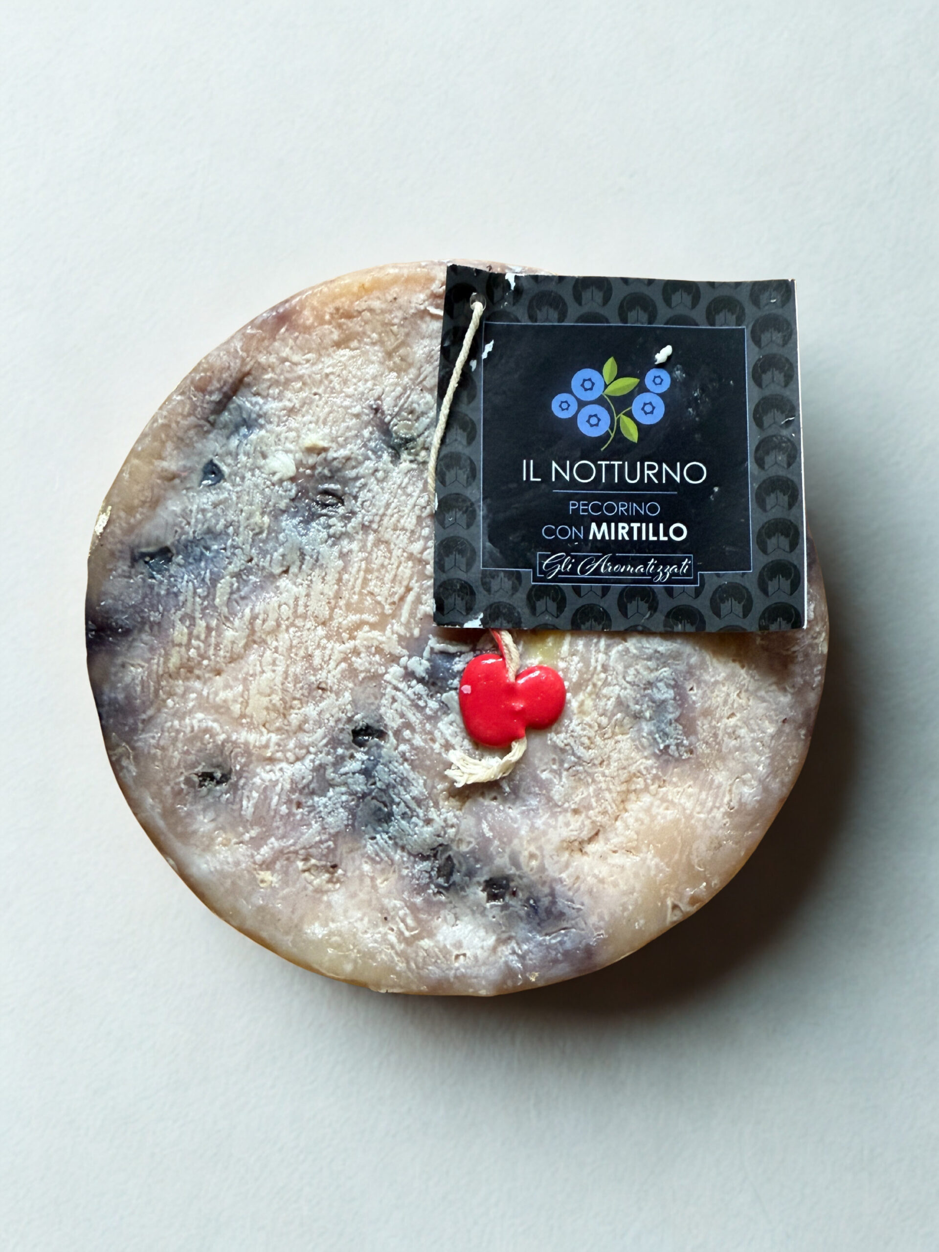 Ser Włoski pecorino z jagodami Pecorino Il notturno con mirtillo- to ser, który zaskakuje elegancją i głębią. Tradycyjny pecorino wzbogacony został o dodatek jagód – które nie tylko nadają mu subtelnej słodyczy i owocowego aromatu, ale też tworzą wyjątkowy kontrast smakowy.
